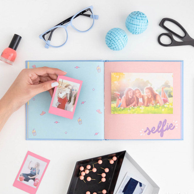 32 páginas para llenarlo hasta los topes de esos selfies y fotos que quieres guardar para el recuerdo con tu mejor amiga, tu crush o, por qué no… ¡con tu perro! Porque los instantes inolvidables puede ser con quien tú más quieras, sin importar en absoluto quien sea. Además, es un álbum de fotos tan práctico y original para regalar, que lo reciba quien lo reciba, le regalarás un extra de alegría. Porque, reconozcámoslo, a veces perdemos las buenas costumbres tanto como las fotos en los antiguos móviles ¿verdad?. Pues recuperemos lo analógico y guarda esos recuerdos como está en los escritos: imprime tus fotos, pégalas en este álbum de fotos y revela ese amor que os demostráis a diario entre selfie y selfie.