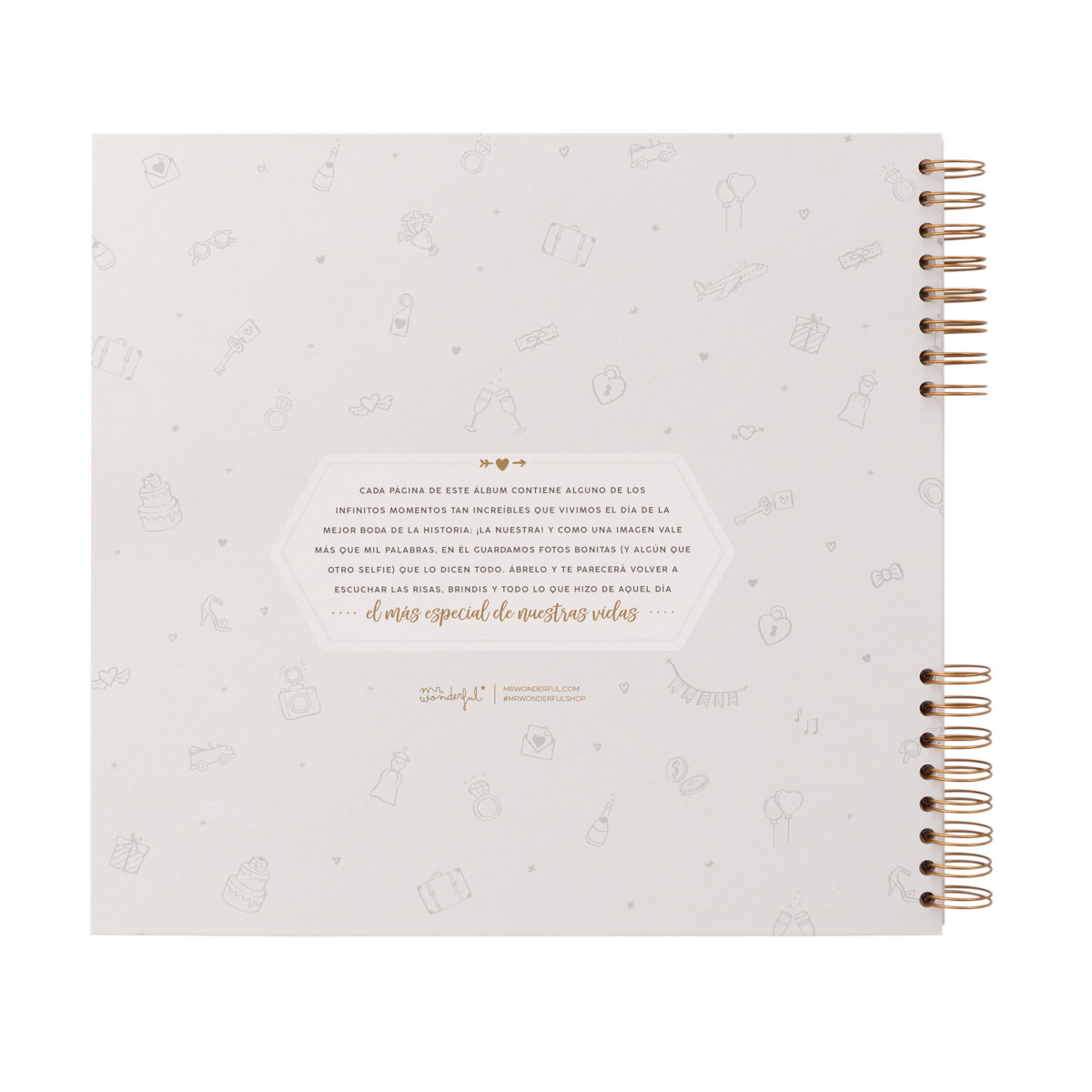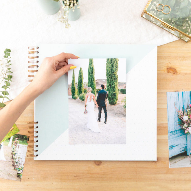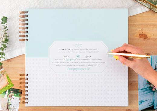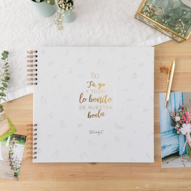 Pero oye, que eso no es todo, porque para que sea una fiesta constante, esta maravilla de álbum requetebonito está diseñado con mucho mucho mimo en formato grande y cuadrado, con tapa dura y forrada. Vaya, que este álbum de fotos para bodas lo tiene todo para cautivar al personal y robar (casi) más miradas que el vestido de la novia. La mejor manera para presumir de bodorrio con tus invitados o ser el centro de atención en las comidas familiares. Claro que sí, porque un día así tiene que recordarse siempre. ¡Vivan los novios y el amor del bueno!