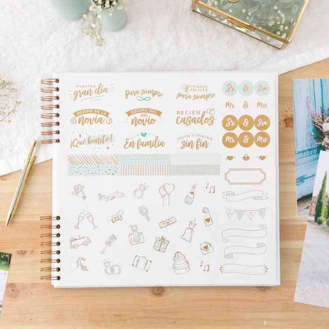Después de planear el gran día durante semanas, meses y hasta en sueños, es una pena que luego esas 24 horas pasen así de rápido. Los nervios previos, la preparación de los novios más guapos del planeta, la llegada de los invitados, la ceremonia, los bailoteos y esos momentos tan inesperados como inolvidables caben en este álbum de fotos preparado para guardar todo lo bonito de vuestra boda. Sí, sí, lo que lees, aquí te cabrá de todo gracias a sus 64 páginas y, además, como están realizadas en cartulina de 300 gramos, podrás pintar, anotar detalles importantes y decorarlas sin miedo de que traspase la tinta de los rotuladores.