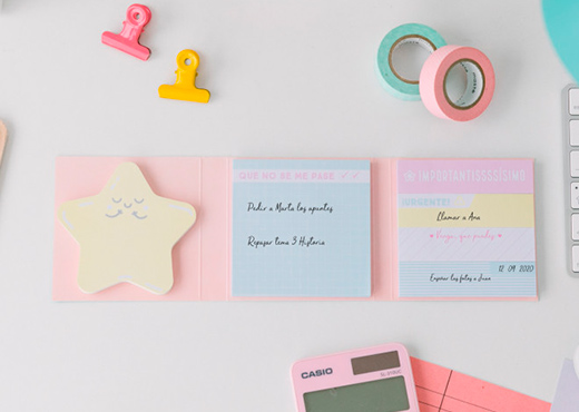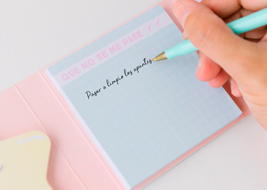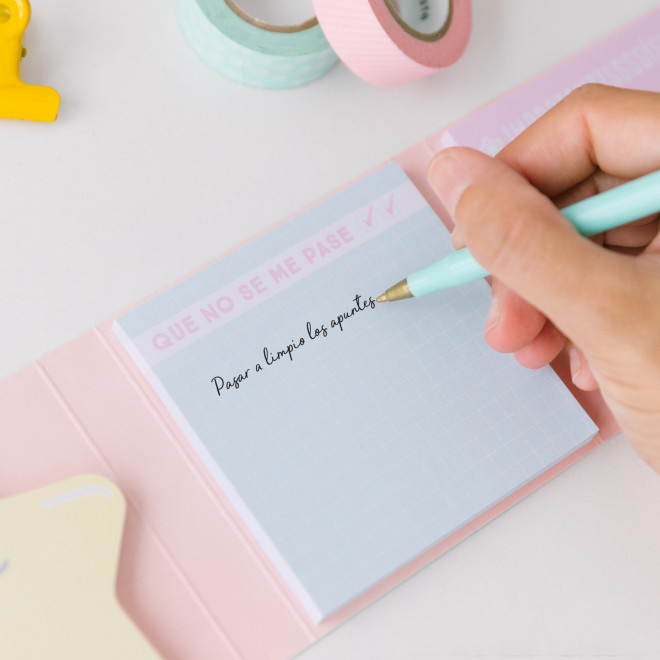 Se trata de este estupendo bloc de notas y notas adhesivas que además de bonito y divertido, resulta de lo más práctico para darle un empujoncito a tu memoria, especialmente cuando más saturada está. Y este que vienen fenomenal para resaltar, como marcapáginas, para dividir el temario o para dejarse mil y un recordatorios… ¡las notas adhesivas son un imprescindible para cualquier estudiante! Así este bloc llega cargadito, ya que incluye seis blocs de notas adhesivas de diferentes tamaños: dos blocs de notas de 8 x 8 cm y cuatro blocs de marcapáginas adhesivos de 8 x 2 cm.