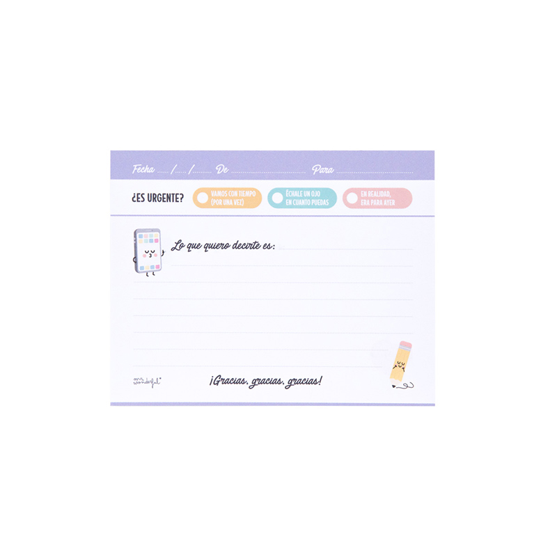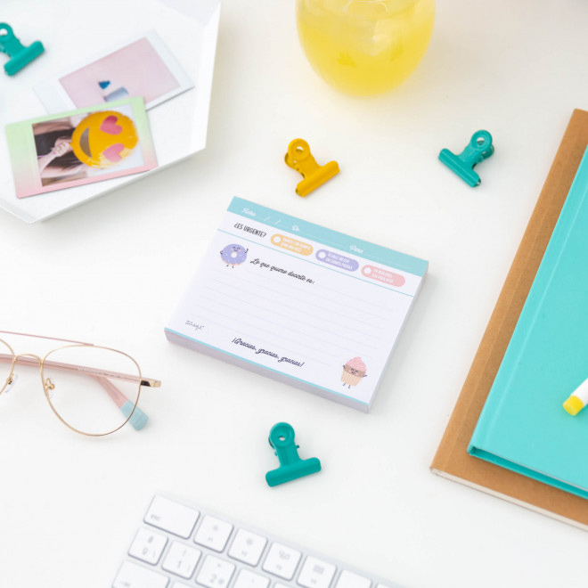 Te presentamos este bloc de notas con 120 hojas para que apuntes todas tus citas del médico, planazos improvisados, las ideas para el regalo de tu amiga del alma o unas palabras amorosas para dar los buenos días a tu amorcete, tú eliges. Además, cuenta con cuatro diseños distintos repetidos a lo largo de esas 120 hojas para que cada notita sea diferente, pero igual de bonita. Guárdalas en tu agenda, entre las hojas de tu libro favorito o engánchalas en la nevera para que siempre siempre las tengas presente y ya verás, como a partir de ahora nada se te escapa.