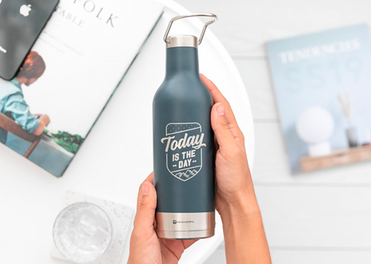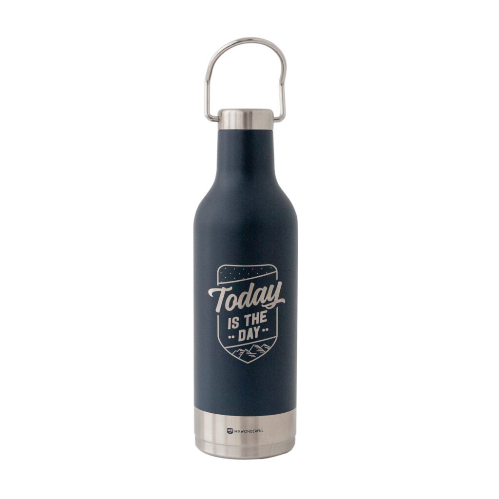 Consigue este buen rollo y motivación para parar un camión con un regalo que dará mucho que hablar los próximos cumples, días especiales, celebraciones y sorpresones que te dan un subidón de alegría de la buena: la nueva botella “Today is the day”. Tiene el tamaño perfecto para acompañarte a todas partes, sin apenas ocupar espacio ni pesar demasiado. Además, su diseño unisex hará que guste a todo el mundo, desde esa amiga que desde siempre es fiel a los colores oscuros como a tu chico que le gustan los complementos modernos, pero sobrios. ¡Una botella térmica de acero inoxidable es un imprescindible!