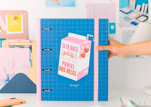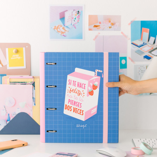 Está científicamente comprobado: lanzarse, atreverte y perseguir tus sueños hasta donde estos te lleven sin mirar atrás, es beneficioso para tu salud y para ser la mar de feliz. Los efectos secundarios son buen rollo, alegría de la buena, un montón de recuerdos inolvidables y muchos muuuchos papeles con listas de prioridades, checklists de objetivos y apuntes para hacer realidad todos tus planes. Por todo eso y por dos motivos más, esta carpeta con anillas está hecha para ti. En primer lugar, porque te recordará siempre siempre que si algo te hace feliz, no tienes que pensártelo dos veces, ¡ponte manos a la obra!