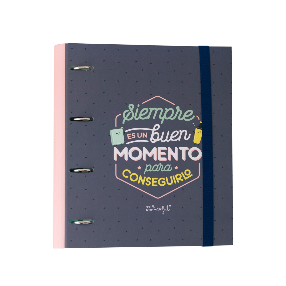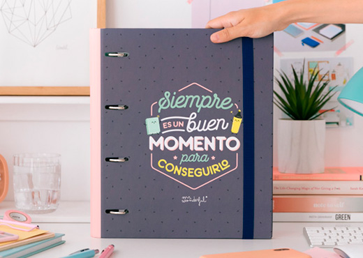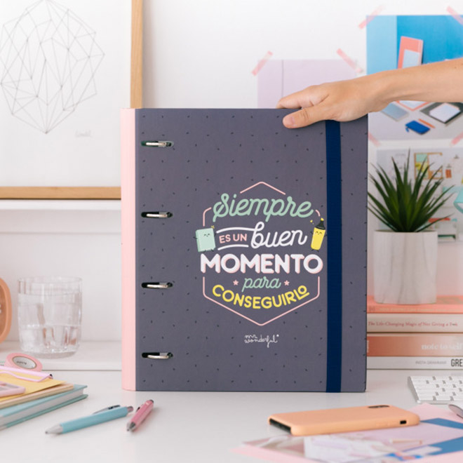Y si te decimos que hoy es un momento tan bueno como otro cualquier para plantarte esa sonrisa que tan bien te sienta y sal ahí fuera darlo todo y a cumplir ese sueño que tan feliz te hace con solo imaginarlo. Pues sí, sí… es verdad, ¡hoy puede ser ese pedazo de día que tanto esperabas! Es solo cuestión de actitud, de echarle ganas y esfuerzo y de creer en que, de verdad, eres increíble. Eso sí, para que no dudes ni un segundo ni se te olvide todo esto que acabamos de hablar, en Mr. Wonderful tenemos un truquito que te vendrá como anillo al dedo: tener siempre bien cerquita esta estupenda carpeta con anillas.