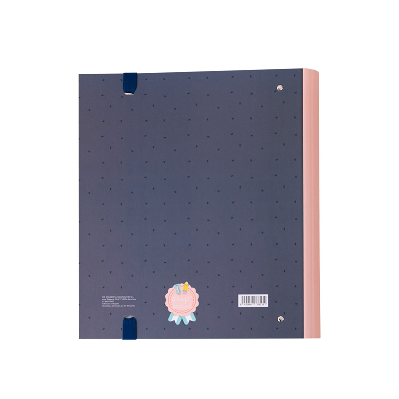 Una carpeta que es lo más de lo más, como tú, y que cuenta con 4 anillas metálicas vistas para mantener organizadas y clasificadas todas las hojas de apuntes que tanto esfuerzo te ha costado tomar y que tan requetebién piensas estudiar. Para cerrarla tiene una goma elástica con la que podrás asegurarte de no perder nada de nada y, además, incluye un paquete de 100 hojas de papel con estampado Mr. Wonderful que no puede ser más práctico y bonito. Vamos, ¡que los sobresalientes te esperan!