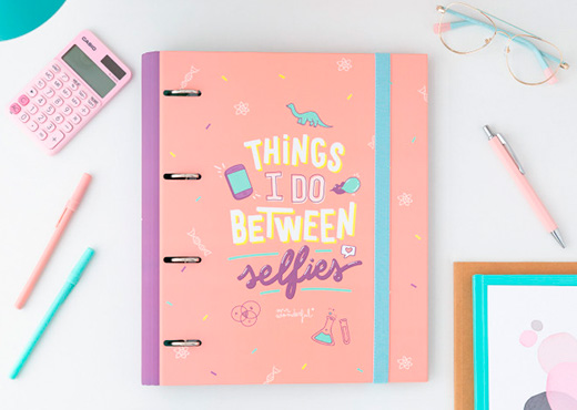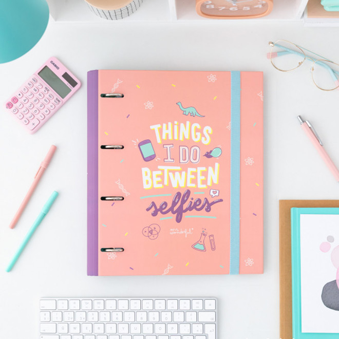 Porque además de ser superbonita por fuera, es muy práctica y útil para las clases, la ofi o ese proyecto tan especial que tienes en mente. Por un lado, sus cuatro anillas metálicas conseguirán que nunca vuelvas a perder los papeles. Por otro, incluye un paquete de 100 hojas de papel con estampado de Mr. Wonderful en su interior para que siempre siempre tengas espacio de sobras para tomar nota, garabatear y dejar volar tu imaginación. Por último, incluye un cierre con goma elástica y laminado exterior antirayaduras para que la puedas llevar a todas partes en tu bolso, mochila o cartera y que, como el primer día, se mantenga como nueva.