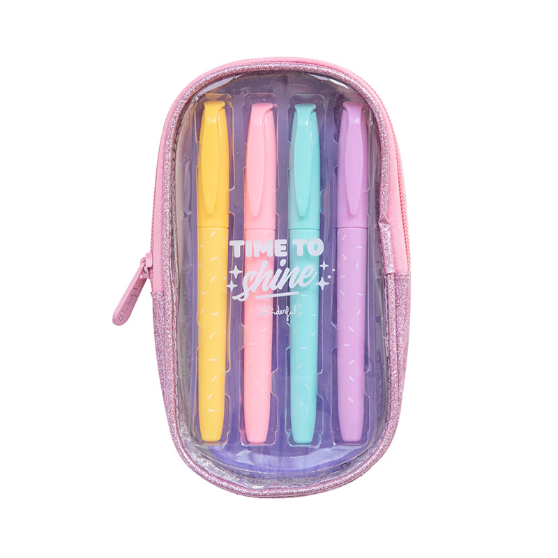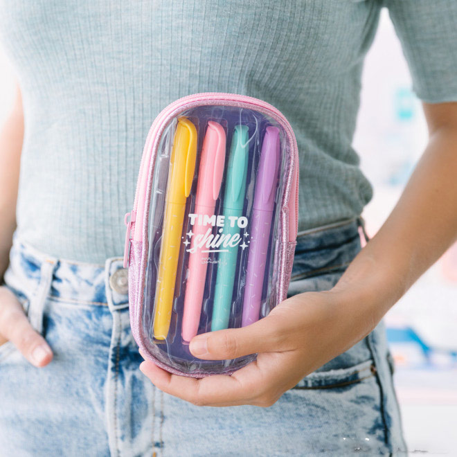 “Si hay algo que tenemos muy pero que muy claro en Tienda Manada es que ¡ha llegado la hora de brillar! It’s time to shine! De brillar como solo tú sabes, de deslumbrar a todos con tus ideas y con tu maravillosa sonrisa. ¿Estás preparado? Pues nosotros también. Y, entre las muchas ideas que se nos han ocurrido para lograrlo, está este set de subrayadores en unos bonitos tonos pastel. Por si fuera poco, vienen guardaditos y recogiditos en un precioso estuche transparente con el mensaje en inglés con el que empezábamos este texto