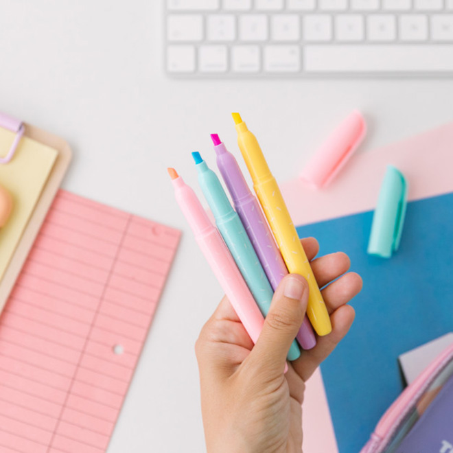 Porque en la variedad está el gusto, y porque, para gustos, los colores, hemos pensado (aunque sabíamos desde el principio que te iban a aluciflipar) que cuatro destacadores tan preciosos como estos te iban a encantar. Ahora sí que no vas a encontrar por ningún lado excusas para apuntes y anotaciones aburridas: dales un toque de color y de alegría con este bonito set. Además, resulta superútil si lo que necesitas es categorizar la información: le asignas a cada color un significado y… ¡a subrayar! Si eres un amante incondicional de la papelería bonita como nosotros, esto no puede faltar en tu colección. Estudiar bonito nunca fue tan fácil como ahora. ¡Disfrútalo!