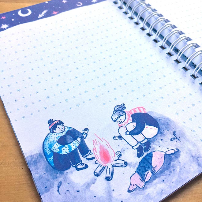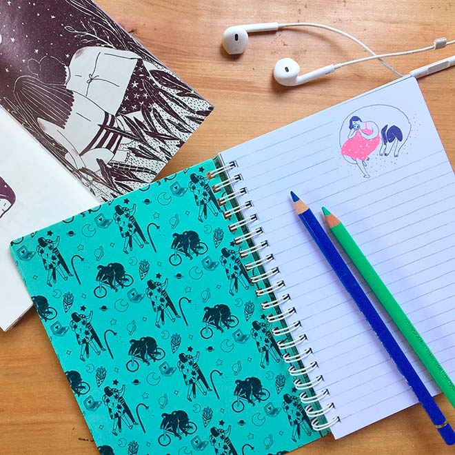 Los journales son cuadernos especiales que puedes usar como agenda, diario de viaje, para planificar o para lo que quieras. Las páginas están ilustradas por Catalina Cartagena con diferentes personajes y escenas.