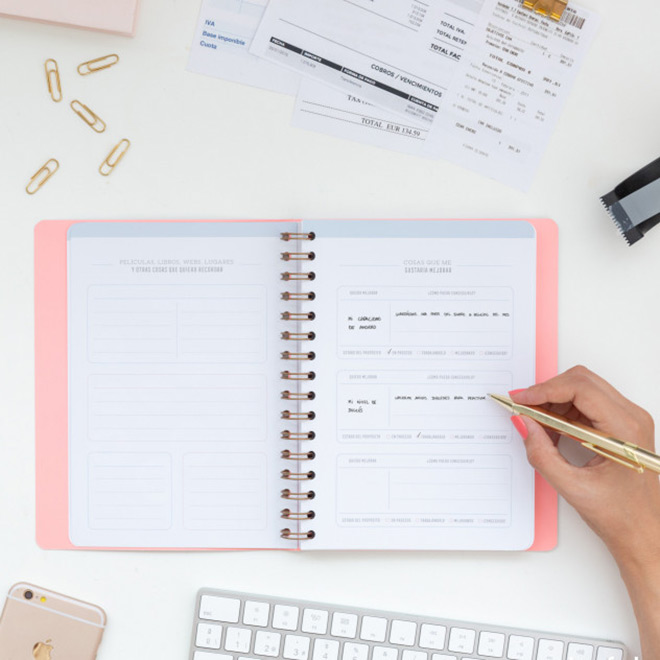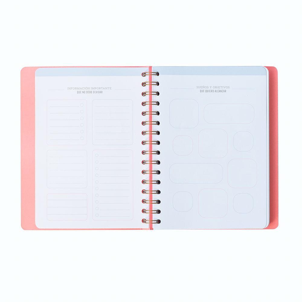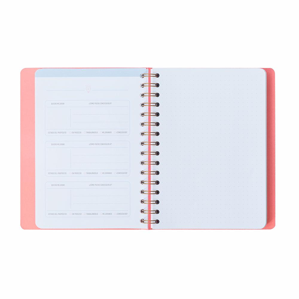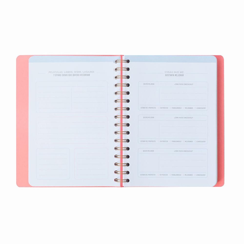 Llenita de inspiración y con mucho espacio para dar siempre la nota: así es esta libreta, cuyo único propósito es darte el empujoncito que te hace falta para ser la mejor versión de ti misma. En ella encontrarás 182 páginas pautadas para escribir todo lo que te ronde por la cabeza y 8 páginas de extras para apuntar la información importante que no debes olvidar, los sueños que quieres hacer realidad, las tareas que debes priorizar y mucho más.