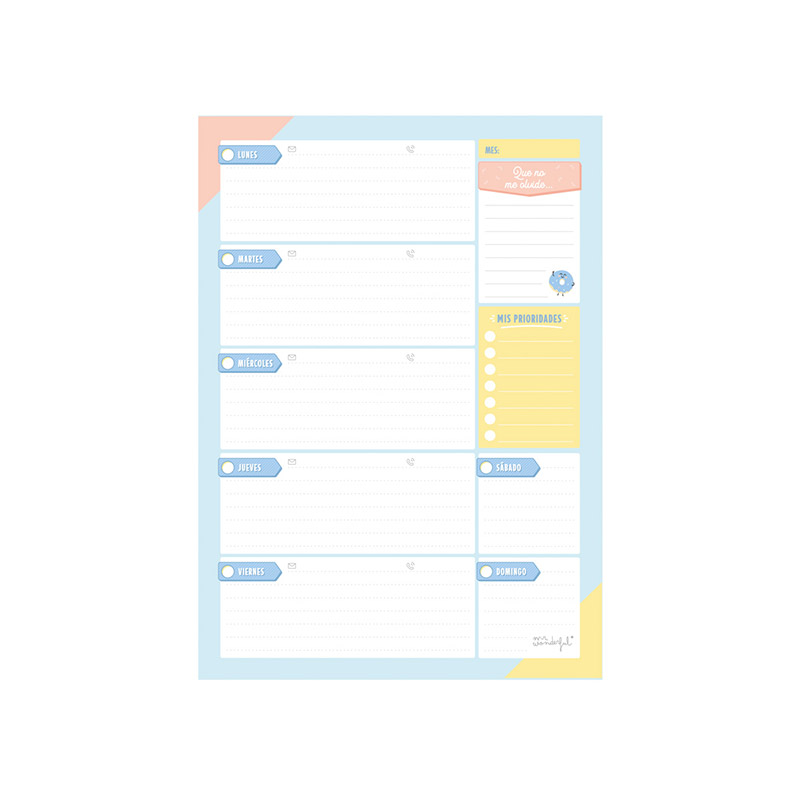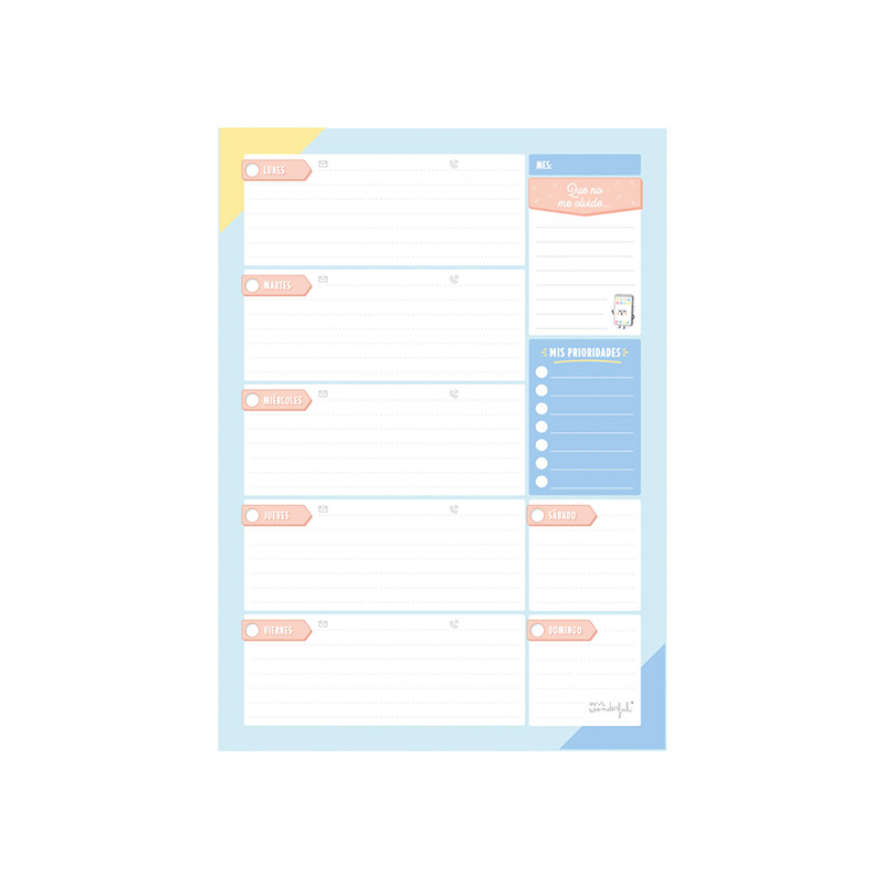 La bonitez que te presentamos aquí es este planificador semanal, que conseguirá que tus semanas estén la mar de organizadas. Hay algo que hace diferente a este organizador en comparación a la mayoría de nuestra colección, y se trata de su formato vertical.