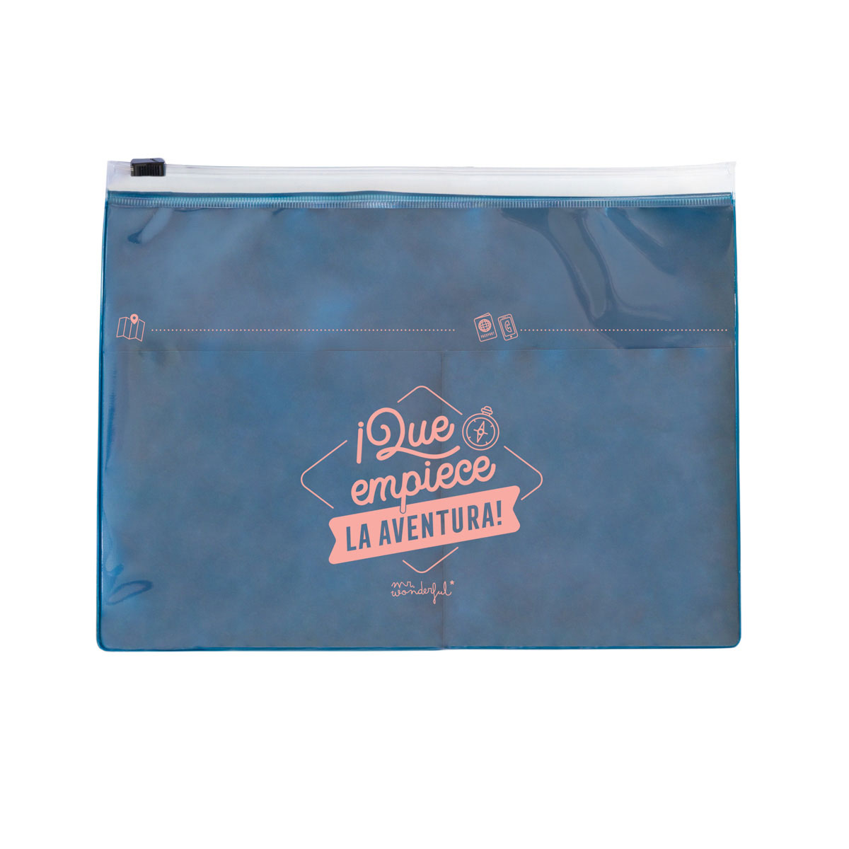 Desde todos los documentos de identificación de cada uno de los viajeros, las reservas de los hoteles, apartamentos y de ese restaurante en el que sí o sí tienes que comer antes de despegar, los tickets del transporte público de tu próximo destino y… ¡hasta un mapa! Cualquier cosa que necesites cabe en este estupendísimo portadocumentos tan cómodo, práctico y moldeable para que quepa en tu maleta sin problemas por muy a tope que la lleves. Además, tiene dos bolsillos exteriores para papeles que necesitas tener a mano y un bolsillo mayor con cierre de cremallera para que no se te escape nada de nada.