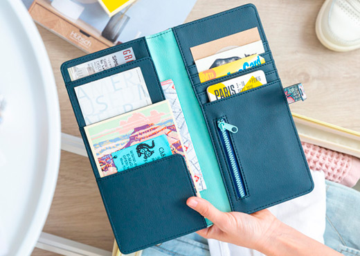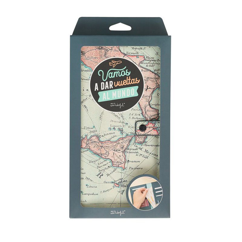 Pijama, neceser, ropa cómoda, cargador de móvil, algo para leer, cámara de fotos… ¿Lo tienes todo? Uy, nos da en la nariz que algo falta aquí. Nos referimos al pasaporte y todos esos billetes y documentos que necesitas para viajar y poder descubrir ese destino con el que llevas tiempo soñando. Pero, para ponerte aún más fácil el tema de tener localizados los papelotes, en nuestra colección Viaje de Mr. Wonderful hemos querido diseñar un accesorio de lo más práctico y bonito: un portadocumentos de viaje. Un complemento que te vendrá fenomenal para guardar tus billetes, tarjetas de transporte, documentación, entradas, reservas y mucho más.
