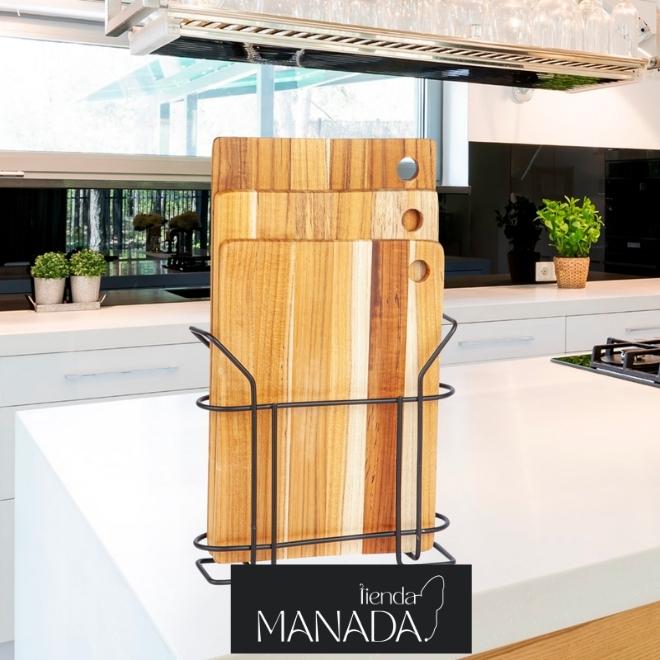 Este set de 3 tablas de corte con soporte, te permitirá tener tus tablas siempre ordenadas y en el lugar que corresponde. Escoge la que más se adapte a tus necesidades del momento y cocina con comodidad.