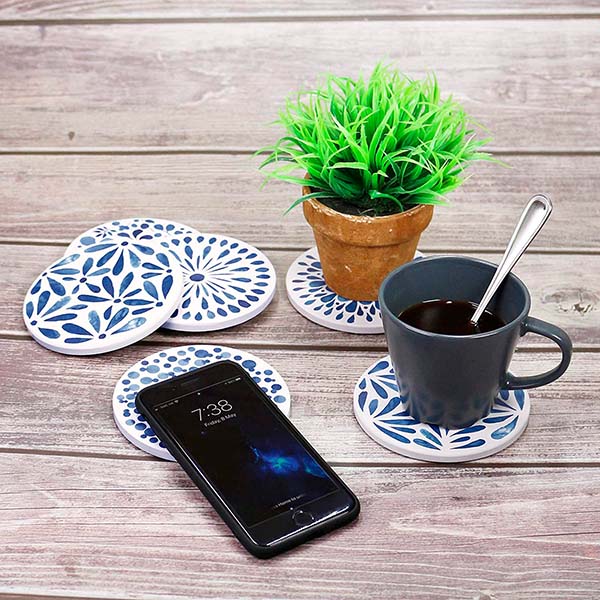 Súper Absorbente: Nuestros posavasos de cerámica evitan las manchas en tus superficies de una manera elegante. Su material de cerámica provee un poder de absorción mayor que otros posavasos hechos de corcho, cuero, papel y goma.