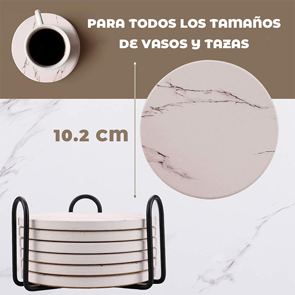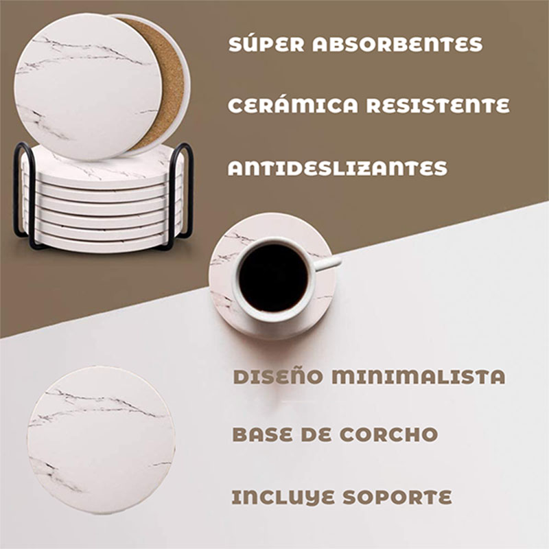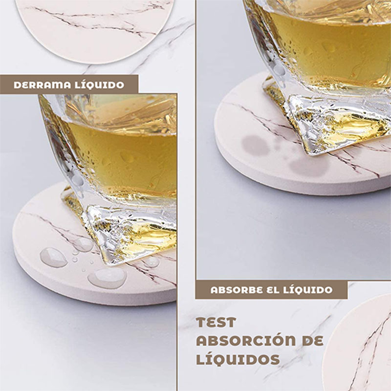 Súper Absorbente: Nuestros posavasos de cerámica evitan las manchas en tus superficies de una manera elegante. Su material de cerámica provee un poder de absorción mayor que otros posavasos hechos de corcho, cuero, papel y goma.