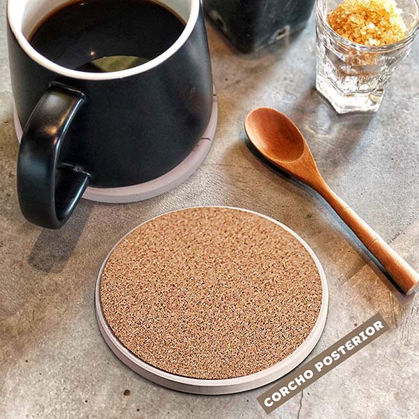 Base antideslizante: La base de nuestros posavasos están hechas de corcho, por lo que no raya superficies y permite que el posavasos no se deslice.